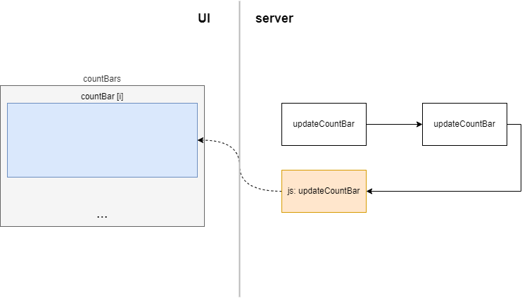 id, which they are identified by.$choice ($filtered/$unfiltered)To update the counts without triggering reactive cycle we created two js handlers which change a bar and a label found using