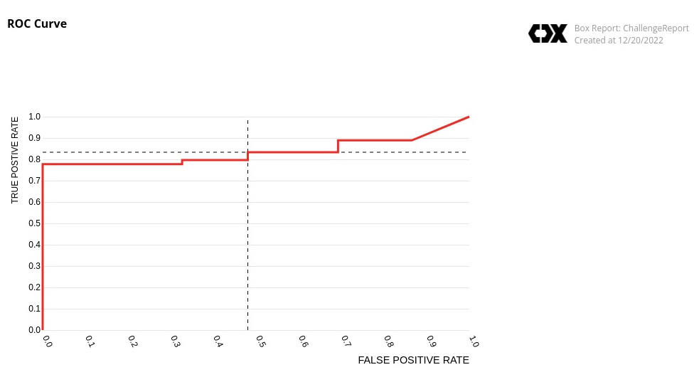 Challengereport allows the user to update the threshold via a slider:This threshold will update the confusion matrix, dashed lines mentioned above, and the information card on the left:
