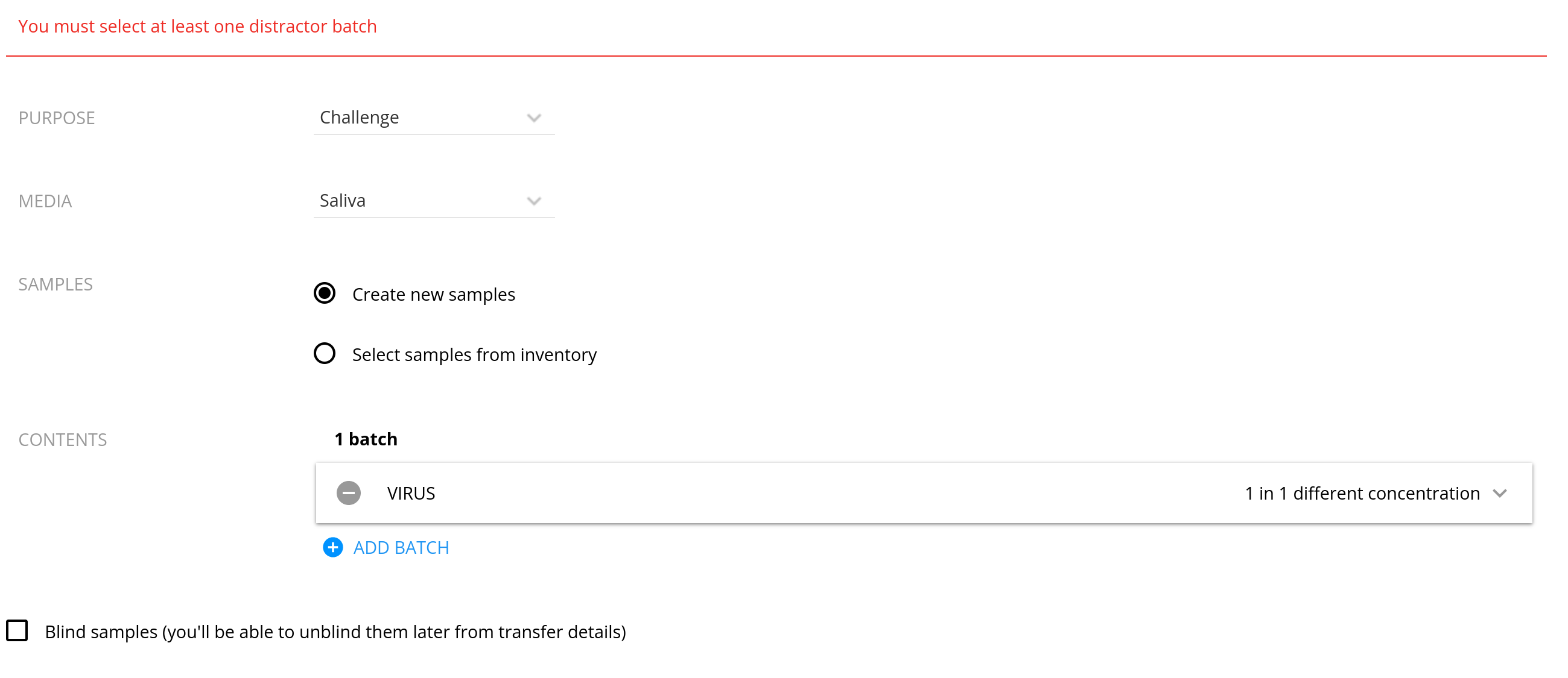 display:none).No need to click the "ADD BATCH" or "ADD SAMPLE" buttons after choosing to create new samples or selecting. You can immediately go to select your first batch or sample.