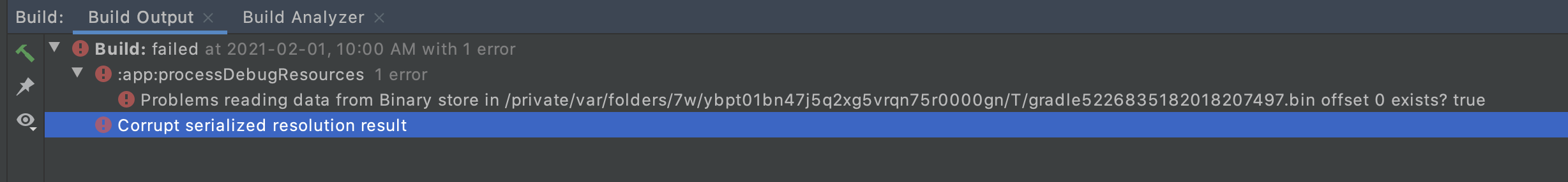 Problems reading data from Binary store in /private/var/folders/7w/ybpt01bn47j5q2xg5vrqn75r0000gn/T/gradle5226835182018207497.bin offset 0 exists? true