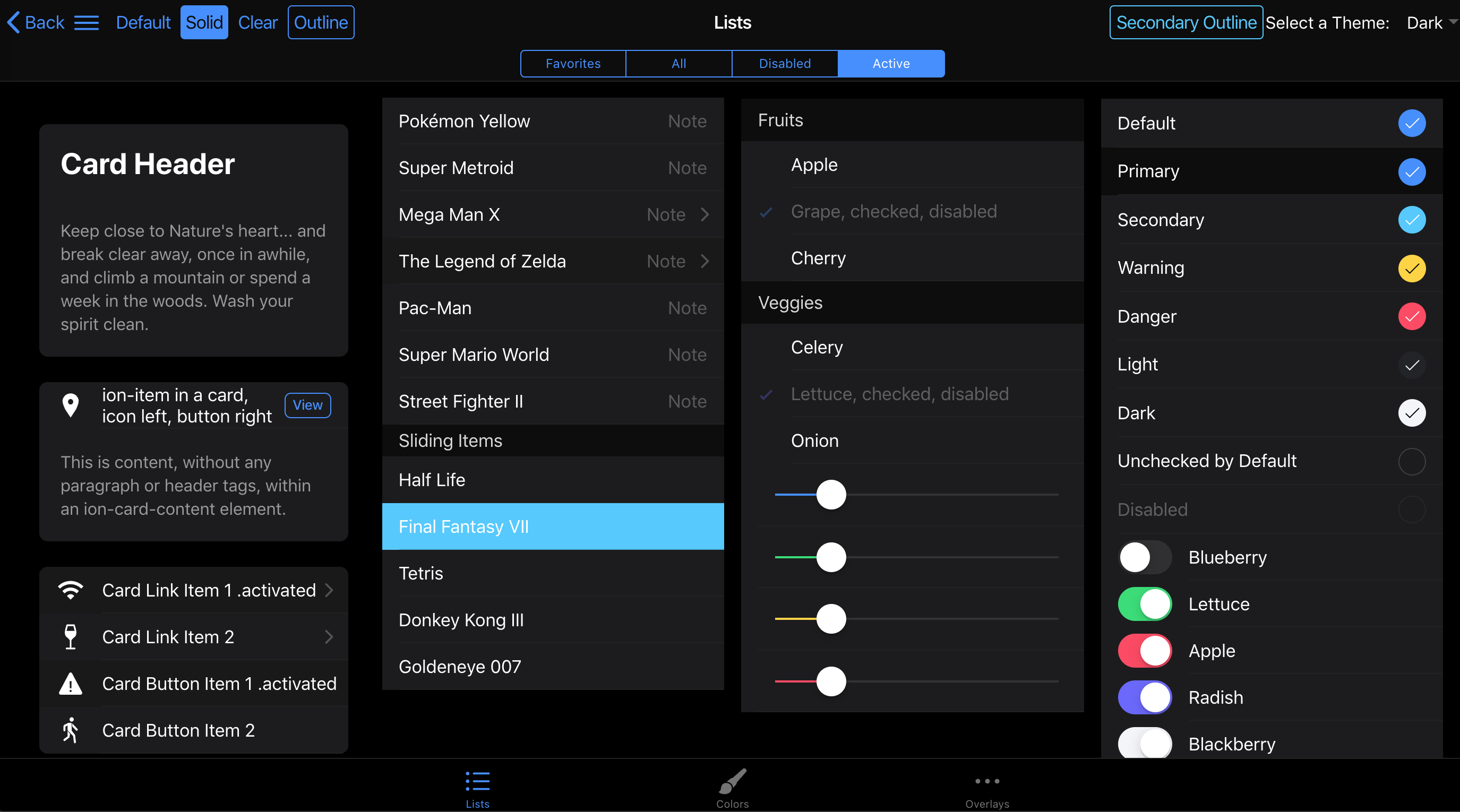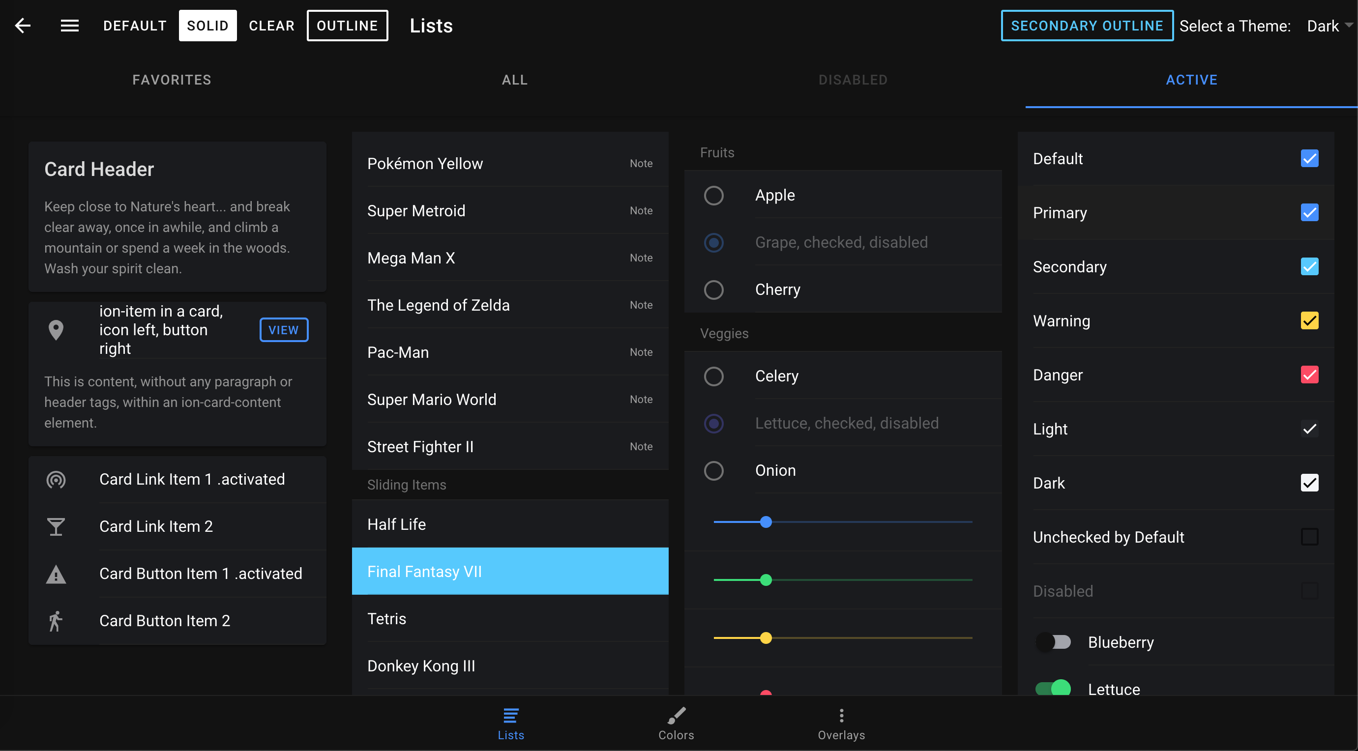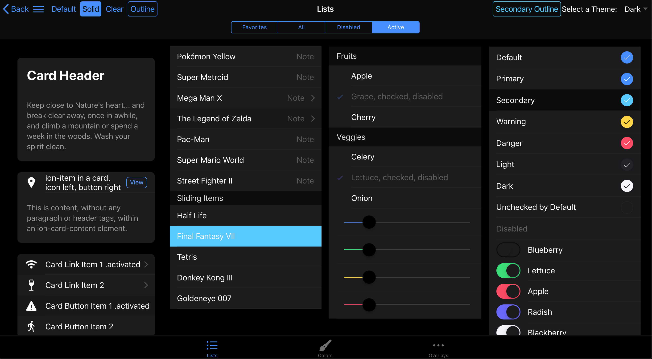 Few the following test to see the dark theme: http://localhost:3334/src/themes/test/css-variables?ionic:mode=ios