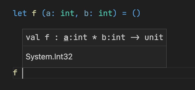 When a function has tupled arguments, the tooltip is technically correct. However, it might be easy if you hit space after the function name to pass arguments not as a tuple since you need to look for the * separators instead of the -> separators: