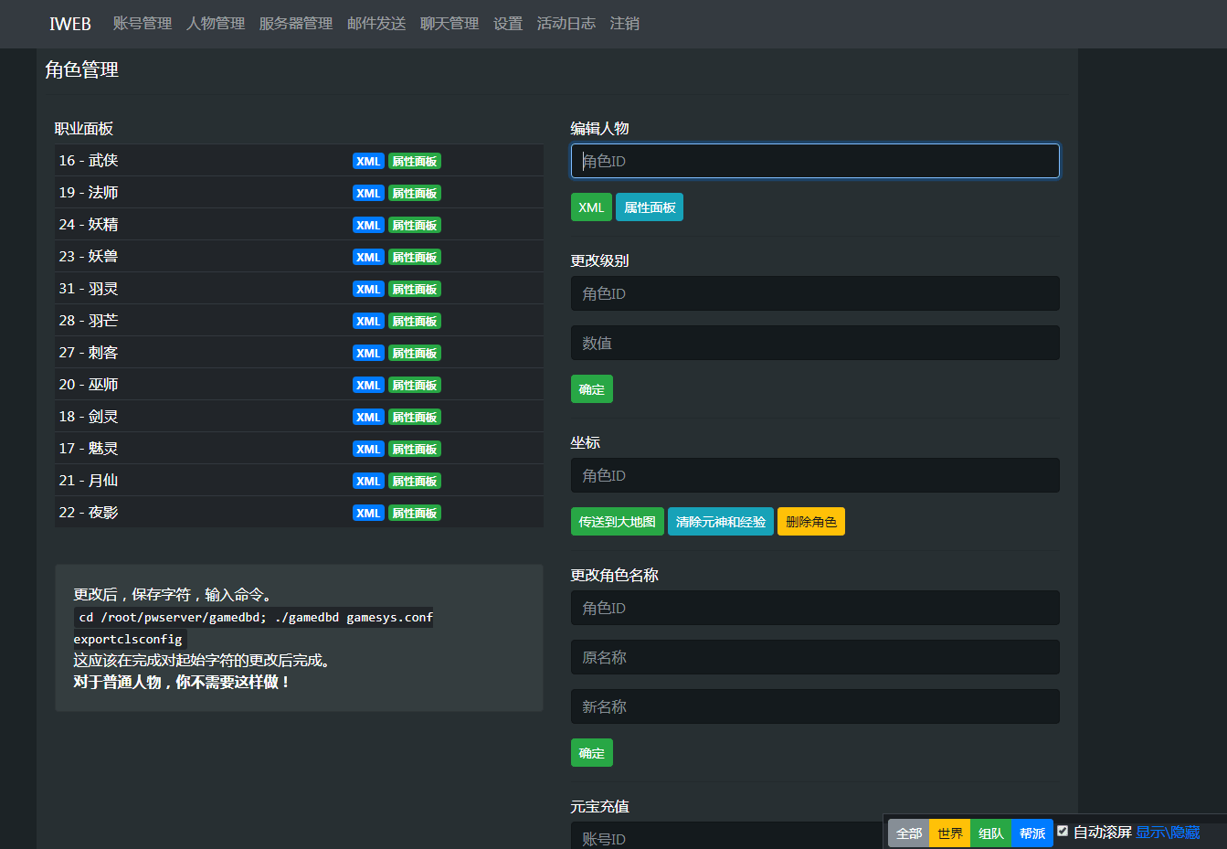 - 服务器管理, 启动/关闭/重启 服务器,查看开启了那些地图以及资源消耗