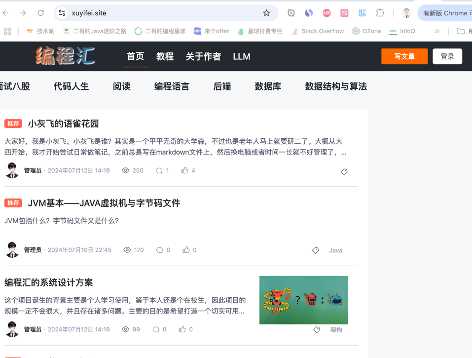 - 技术派教程:https://paicoding.com/column 目前已更新高并发手册、JVM 手册、Java 并发编程手册、二哥的 Java 进阶之路,以及技术派部分免费教程。我们的宗旨是:学编程,就上技术派😁