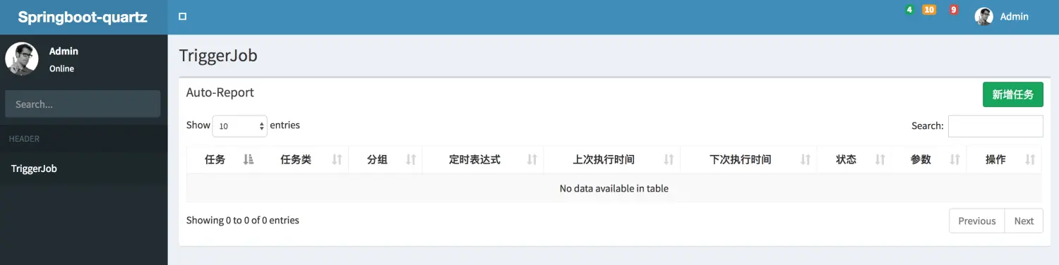 - 拆箱即用,只需简单配置,初始化数据库,写好Job类,即可轻松实现定时任务调度