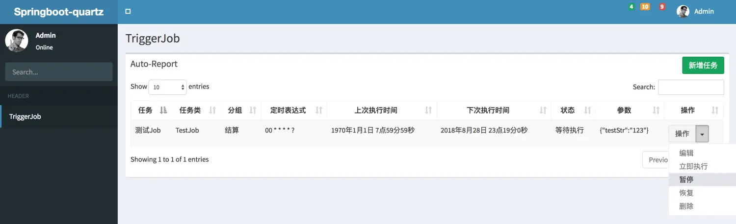 项目启动后可访问后台地址针对任务进行操作 http://localhost:8081/quartz-project/starter.html