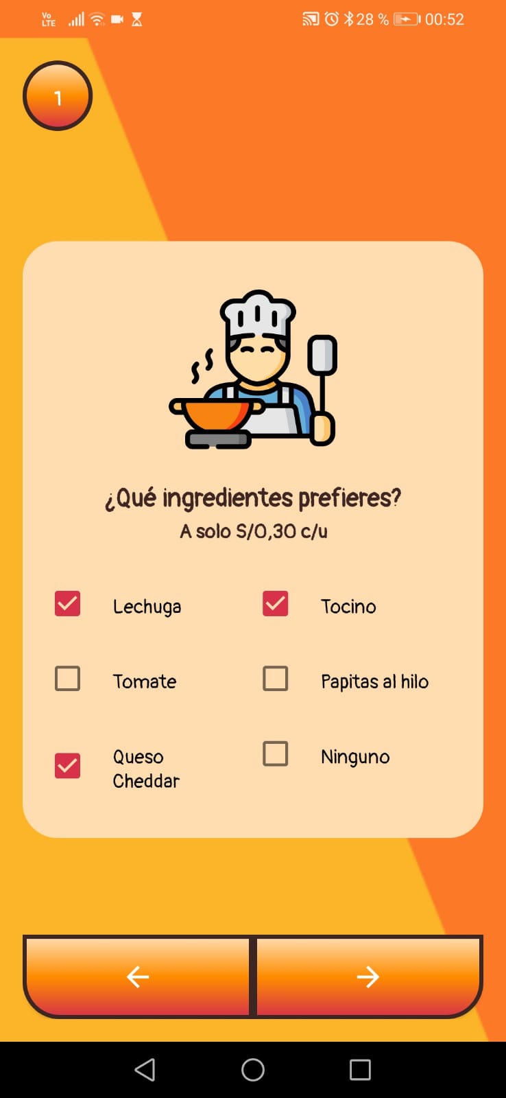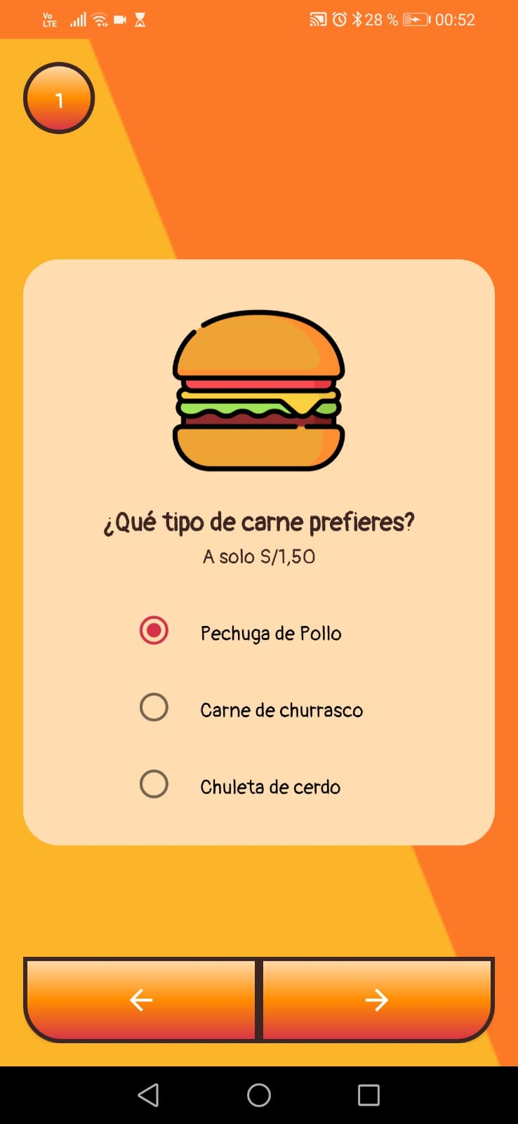 - Selección de cantidad de hamburguesas.