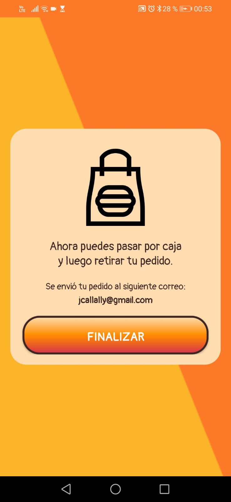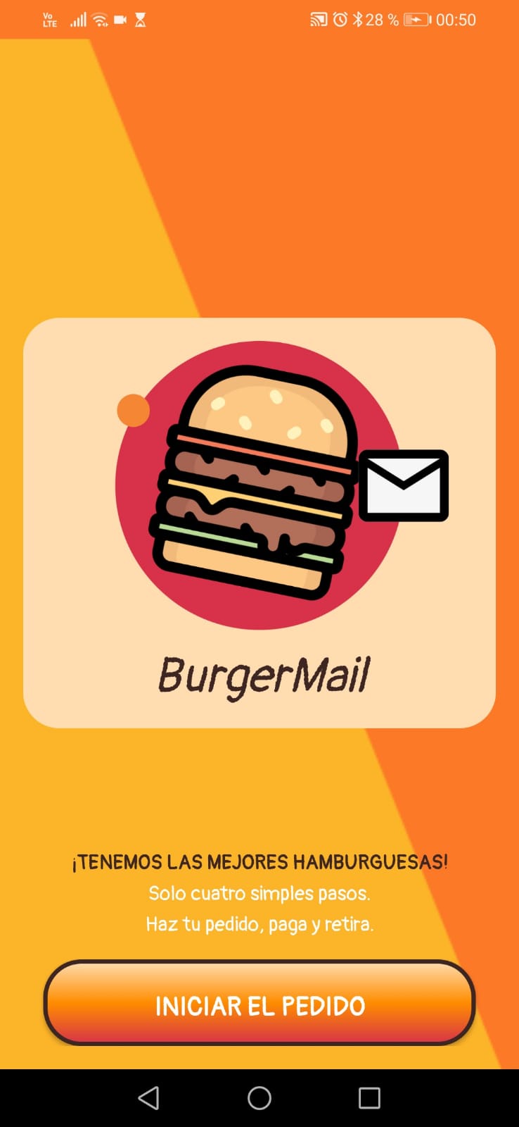 BurgerMail es una aplicación Android desarrollada en Java, diseñada para autoservicio en locales de comida rápida. Permite a los clientes armar pedidos personalizados de hamburguesas y enviarlos automáticamente por correo electrónico al local y al cliente como confirmación.