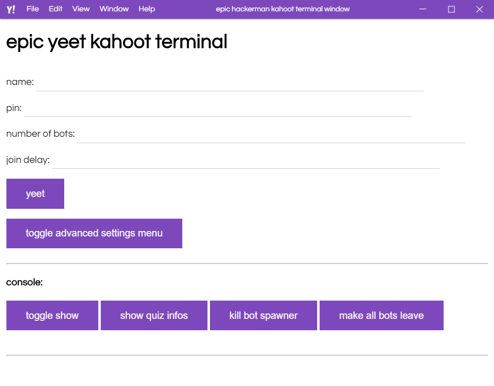 A GUI for a simple Kahoot spammer. Not affiliated with Kahoot.