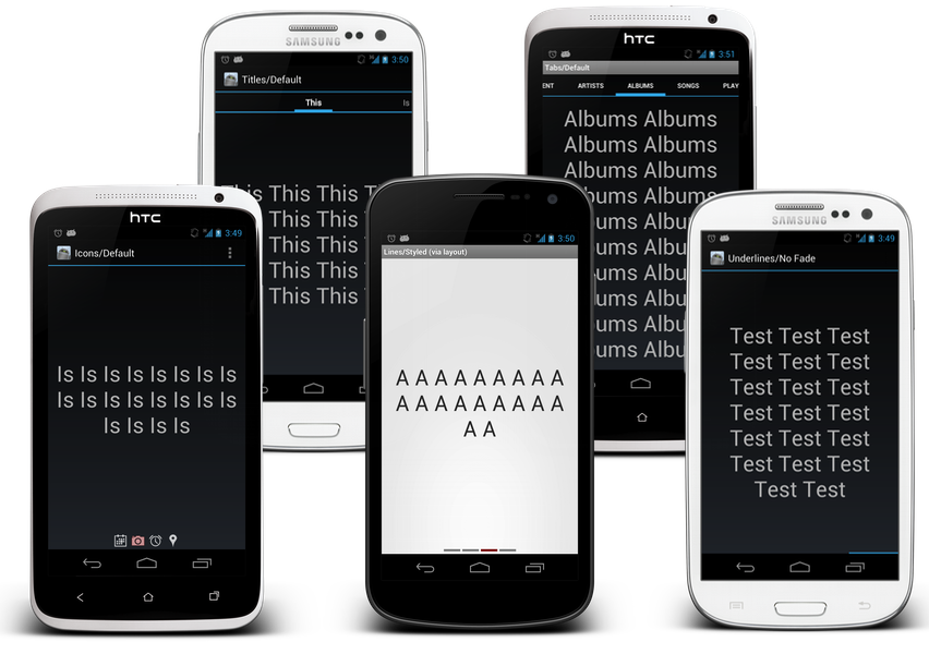 it represents.<com.viewpagerindicator.TitlePageIndicator android:id="@+id/titles" android:layout_height="wrap_content" android:layout_width="fill_parent" />