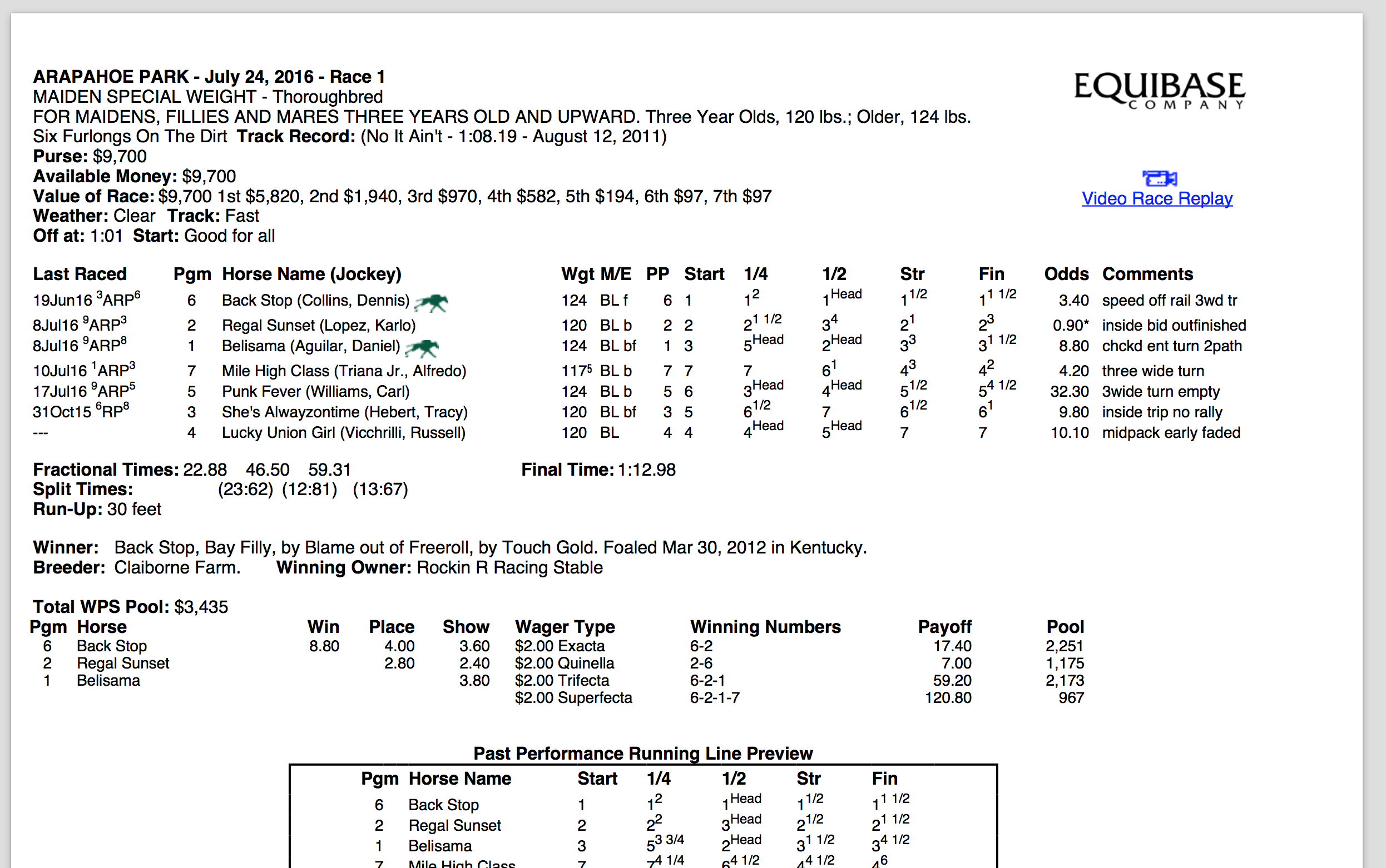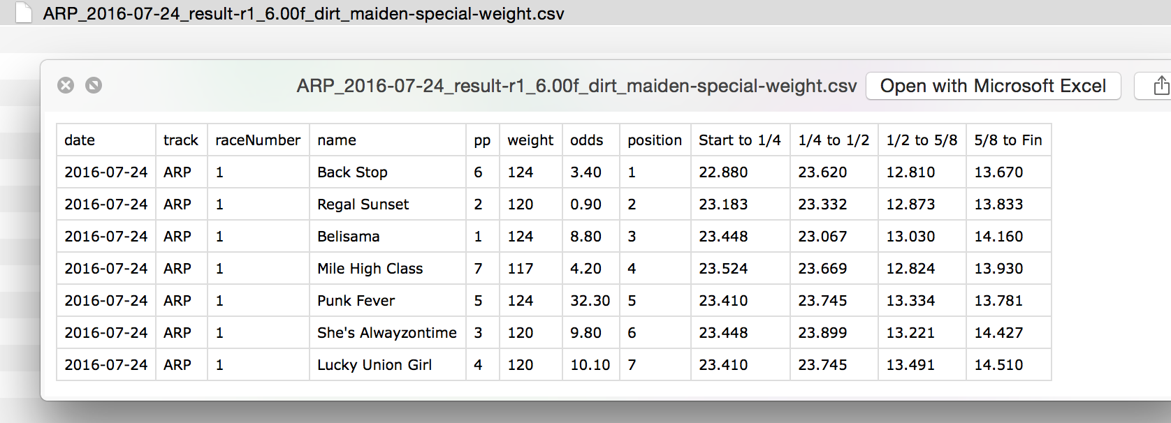 When given an Equibase result chart PDF file e.g.