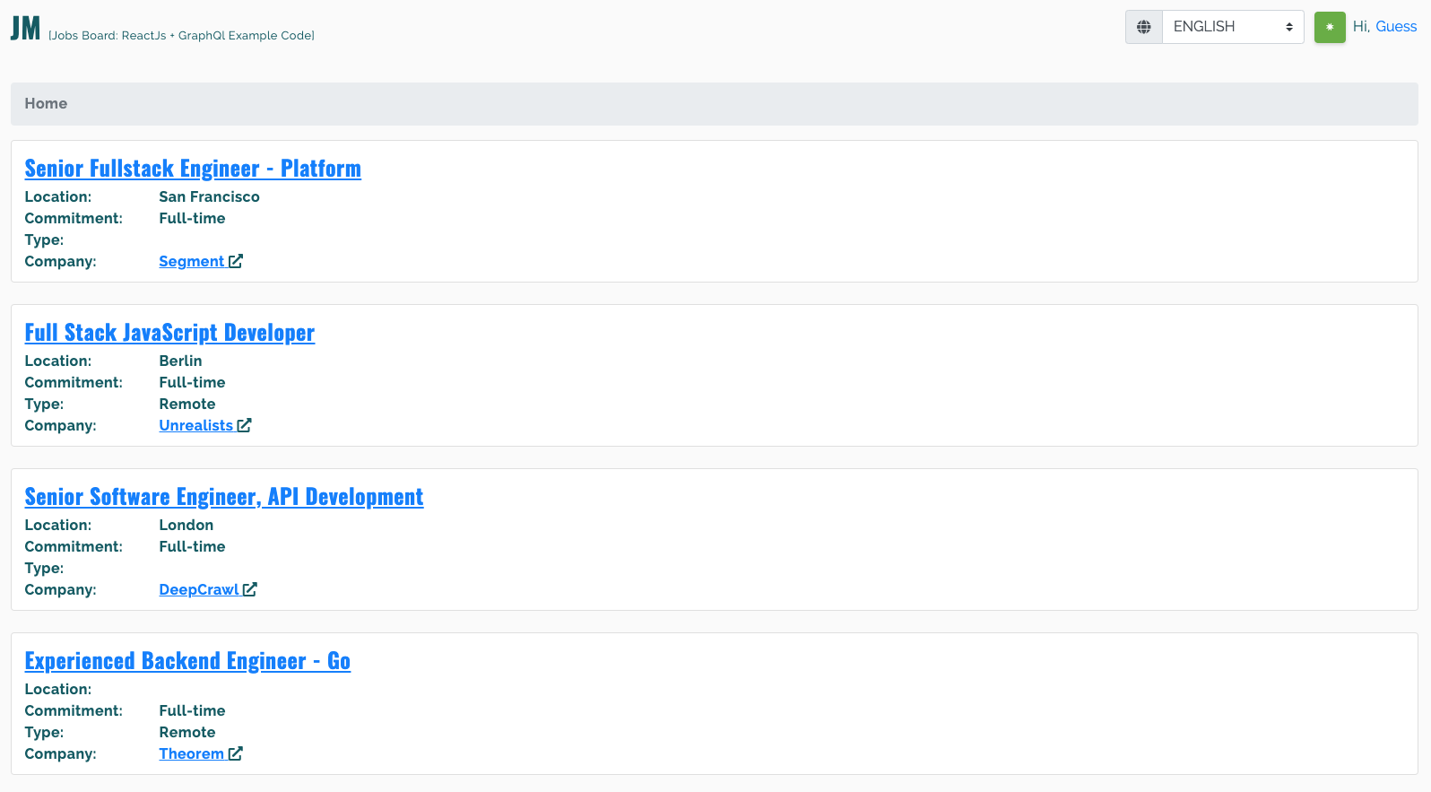 Jobs Board. A simple ReactJS + GraphQL example code.