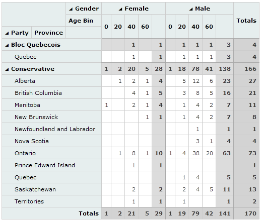 Left image is the default react-pivottable rendering, while right images shows react-pivottable-grouping with the default grouping:true enabled.
