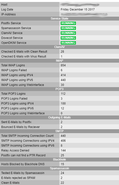 Nearly every Linux Server owner is running his own Postfix Mailserver. Securely sending emails becomes more and more complicated over time. Statistics on the Postfix Mailserver can currently only be accessed via Mailgraph. We provide an alternative presentation by e-mail. The software is developed in Bash for performance reasons and is very easy to install. We are looking forward to your feedback!