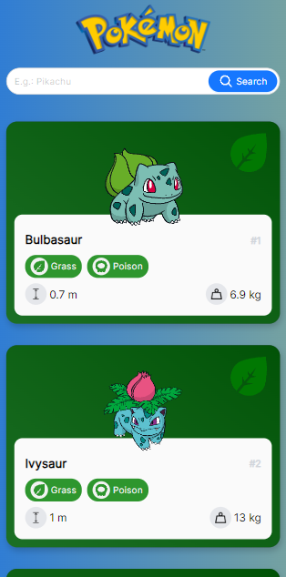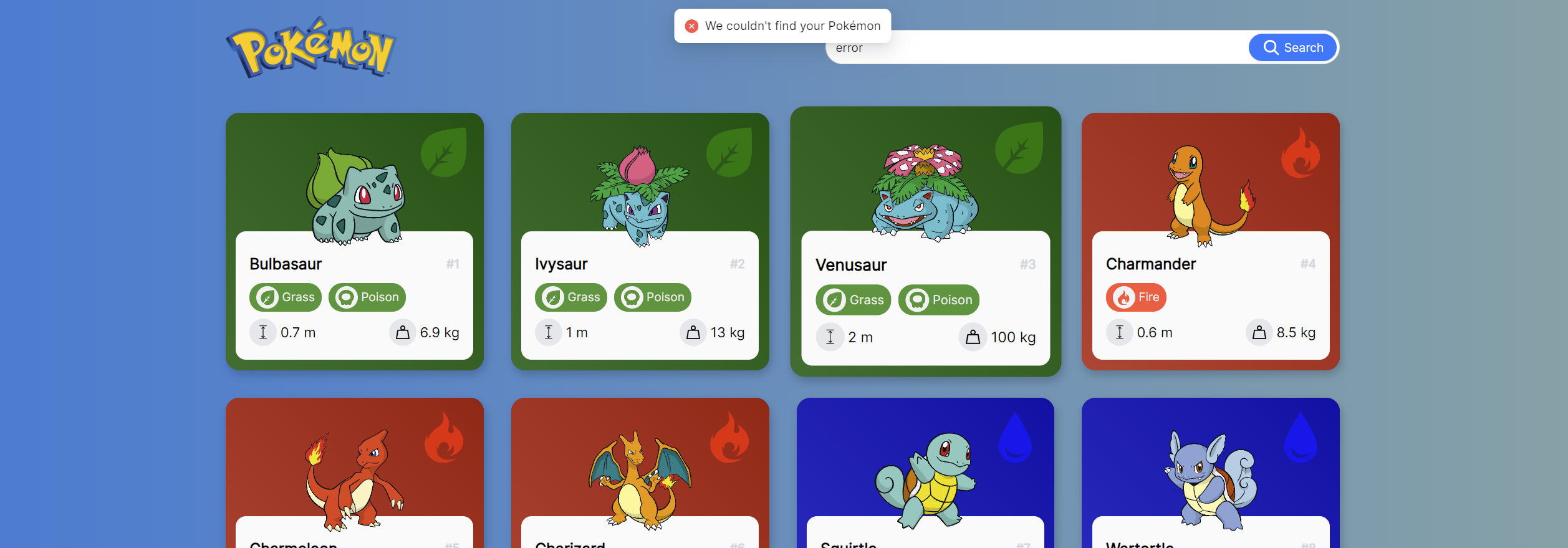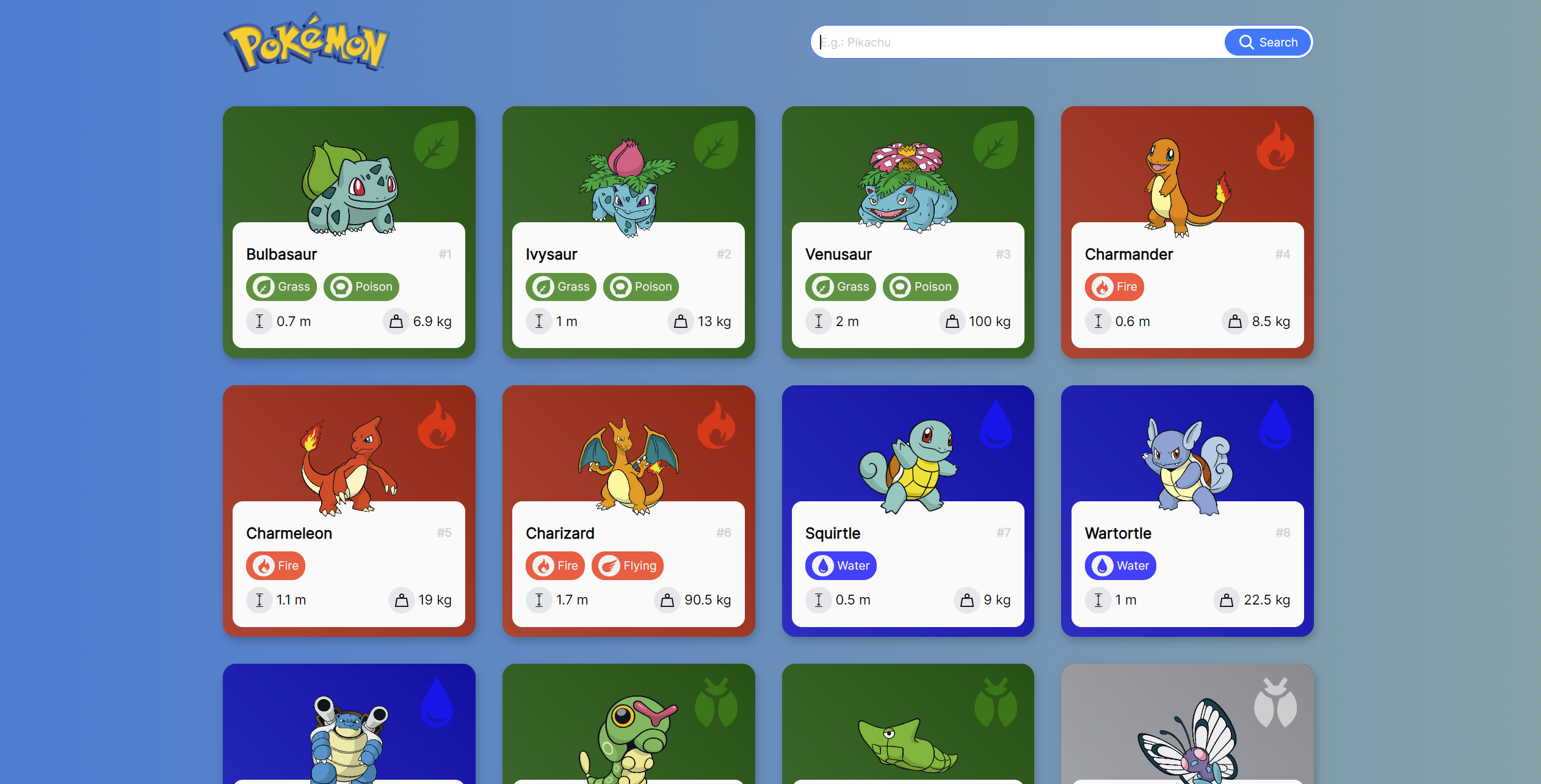 If you have searched for a Pokémon but want to display the list again, simply erase the input value or hit the Pokémon logo.