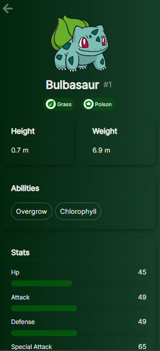 usePokemon has the same queryKey used on the usePokemonList, so the detail page is fully built