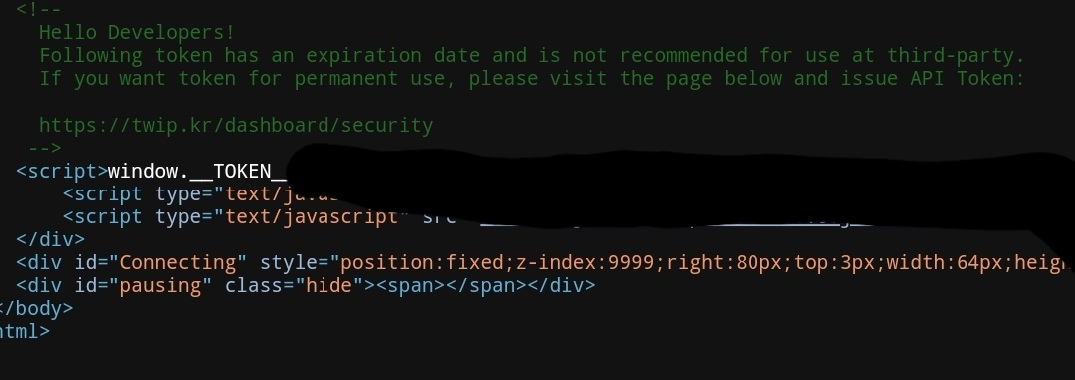 페이지를 크롤링해서 토큰 값 (window.__TOKEN__) 받는 건 twip 측에선 권장하지 않습니다. #1