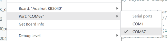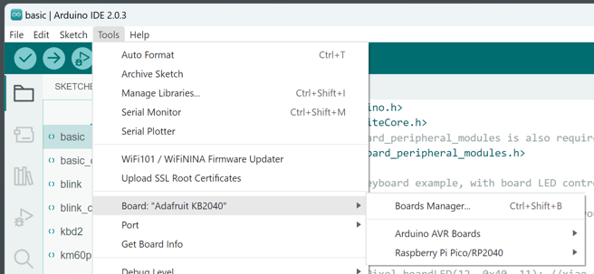 Open an example sketch from File > Examples > KermiteCore_Arduino > basic.
