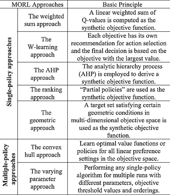 - The related disciplines of MORL include artificial intelligence, decision and optimization theory, operations research, control theory, and so on