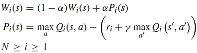 - Assign the W value as the highest Q-value among all the objectives in the current state