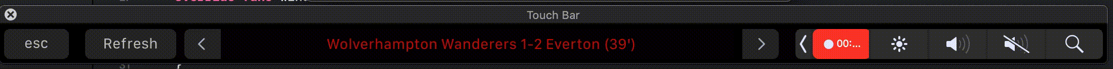 An app that displays live soccer game scores on the Touch Bar