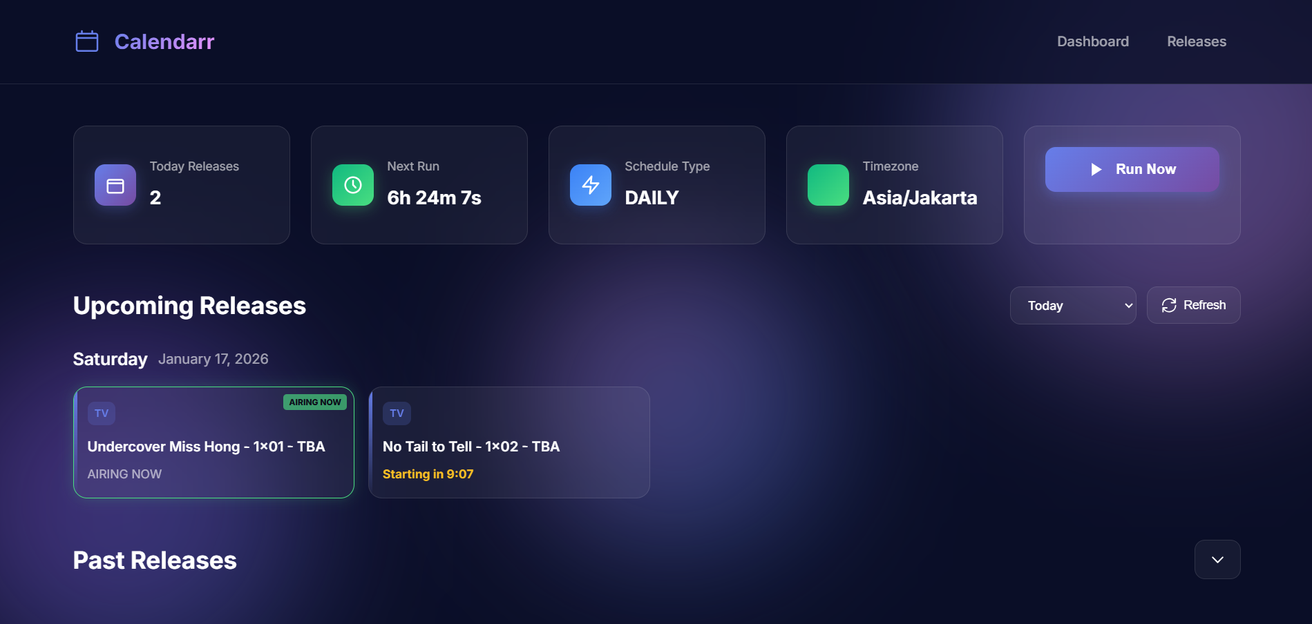 - Web UI: Beautiful dashboard to view upcoming events, trigger manual runs, and view configuration.