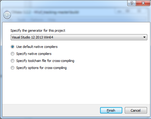 Visual Studio 12 2013 Win64from the generator dropdown. -