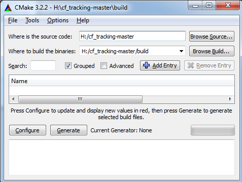 Generate. This will create aCfTracking.slnVisual Studio solution file in the folderH:\cf_tracking-master\build\. -