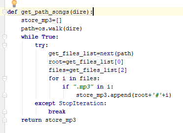 This job is done by def get_path_songs(dire) function it return list of songs i.e 'pathofsong#songname'