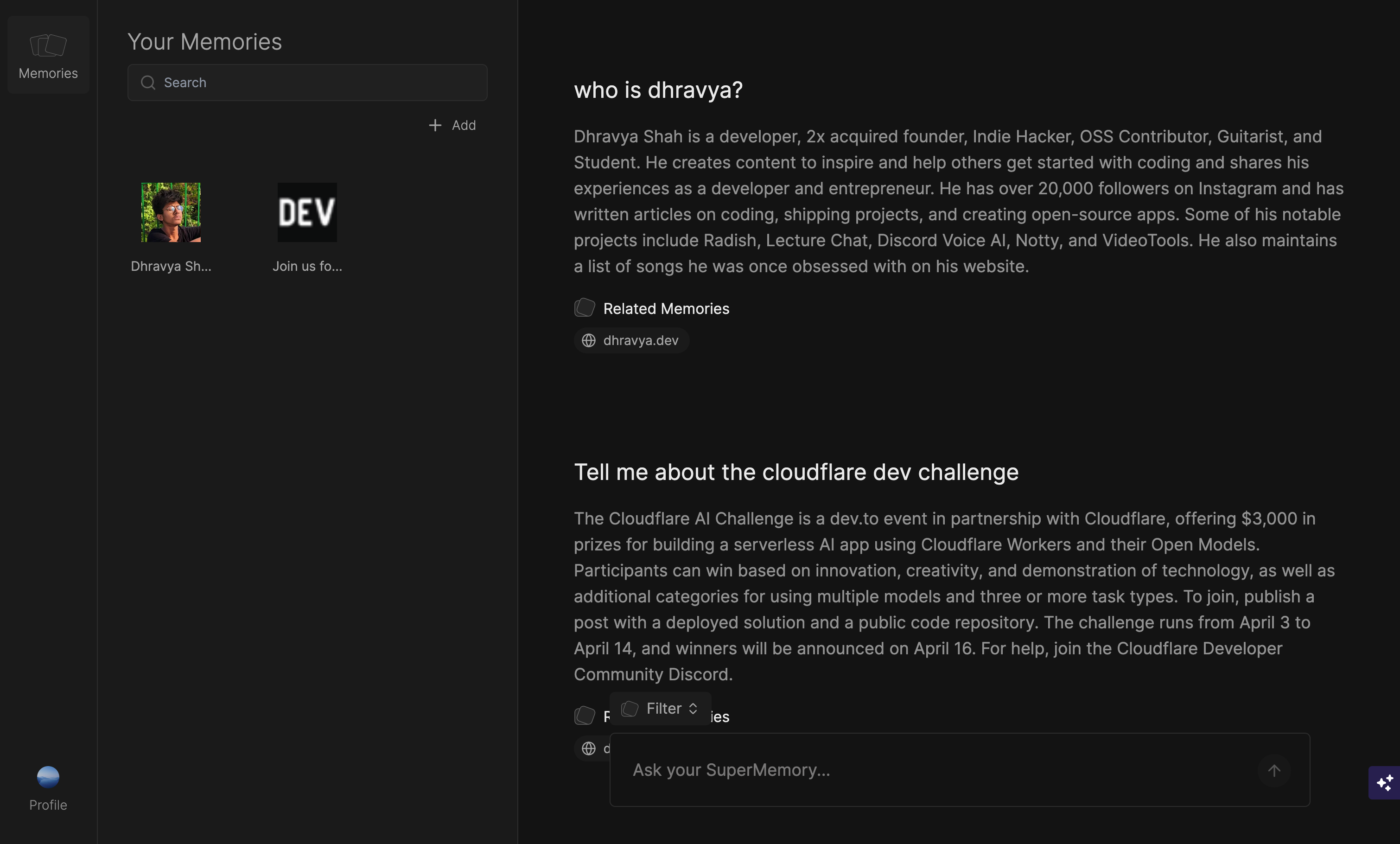 Supermemory fixes this.