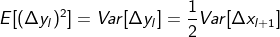 • 所以:$$E[{(\Delta {y_l})^2}] = Var[\Delta {y_l}] = {1 \over 2}Var[\Delta {x_{l + 1}}]$$...................................................(8)