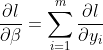 • $${{\partial l} \over {\partial \beta }} = \sum\limits_{i = 1}^m {{{\partial l} \over {\partial {y_i}}}} $$