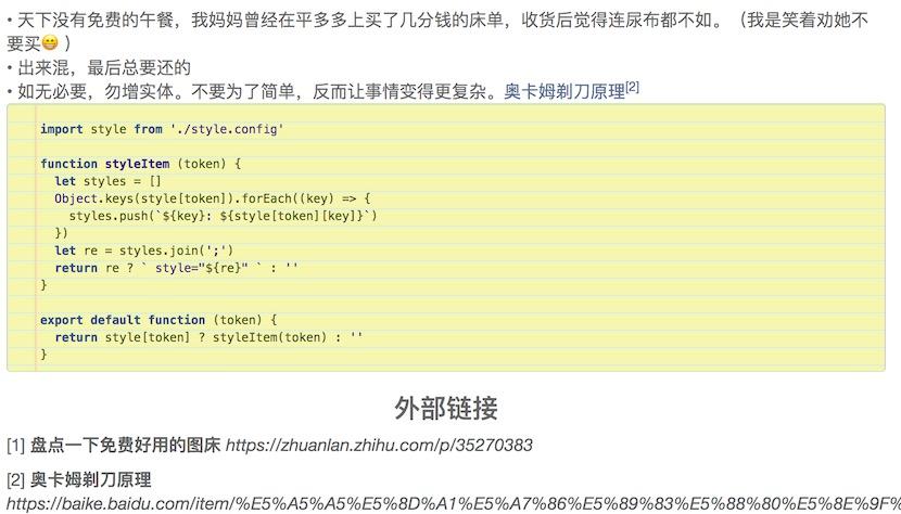 将markdown吐出的html, 喂给微信编辑器 使用在线版: https://wdd.js.org/m2w-transform/ 介绍:https://mp.weixin.qq.com/s/HOjYUt3vpkPyqQsy4ENSCQ 优点 加载速度快 完美还原ul和li 字号调整为16px 仅支持将markdown文件转化成微信公众号内容,不支持markdown编辑。确切点说是编辑有点困难,哈哈哈。适合做个格式转换器 支持90种代码高亮的主题 支持显示目录 支持将markdown中的链接,转化成底部外链 表格和图片复制到微信编辑器中100%宽度 渲染截图