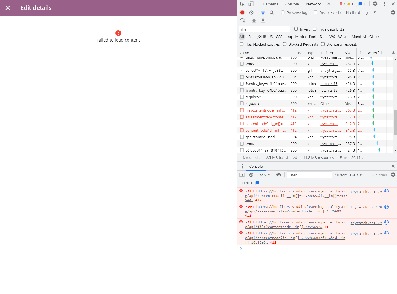Every time I create a new folder/attempt to edit a folder or edit a resource I am getting a 'Failed to load content' error.