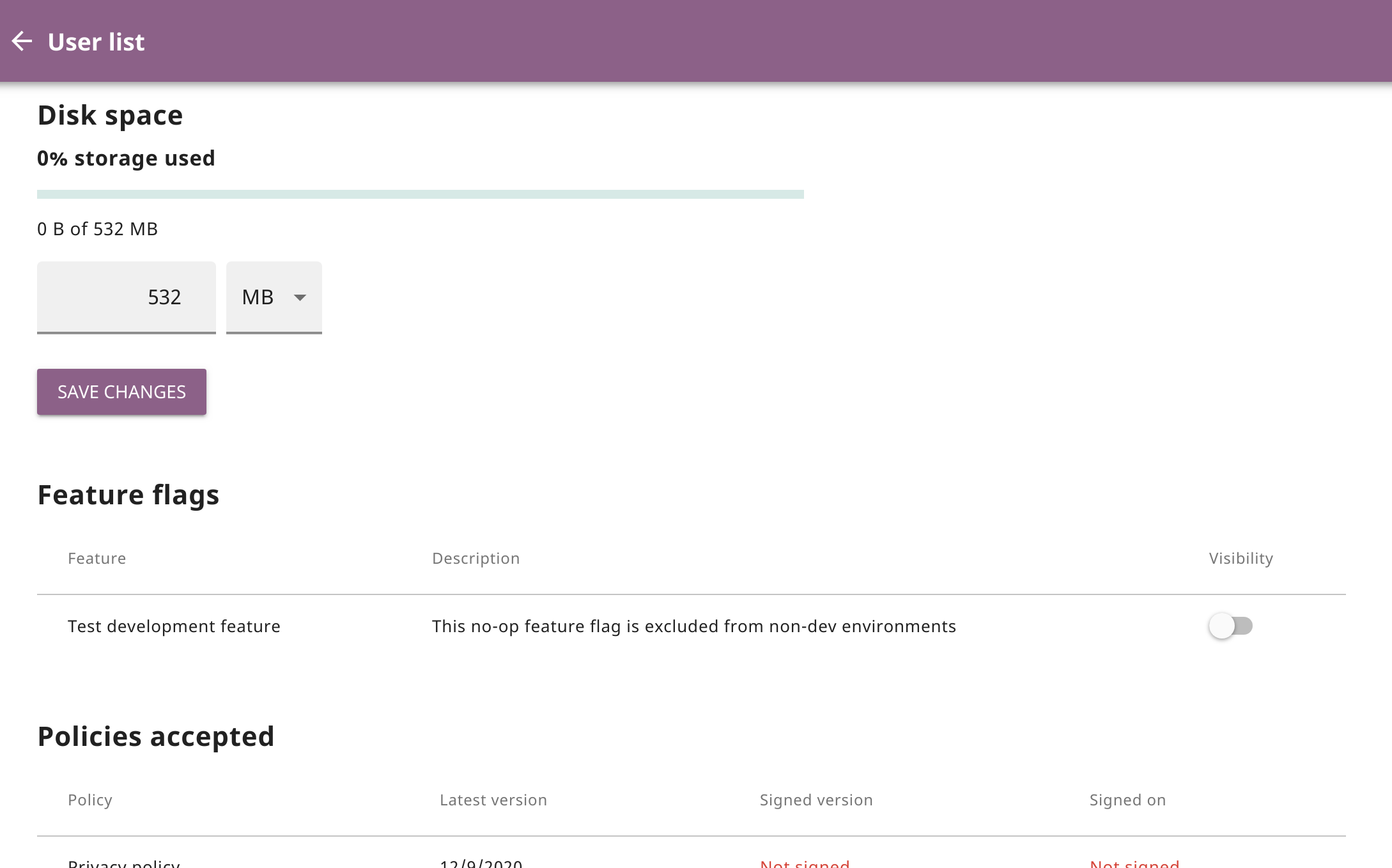 Allows for customization of Studio behavior on per-user basis through features defined in a static JSON file and granted through the admin interface.