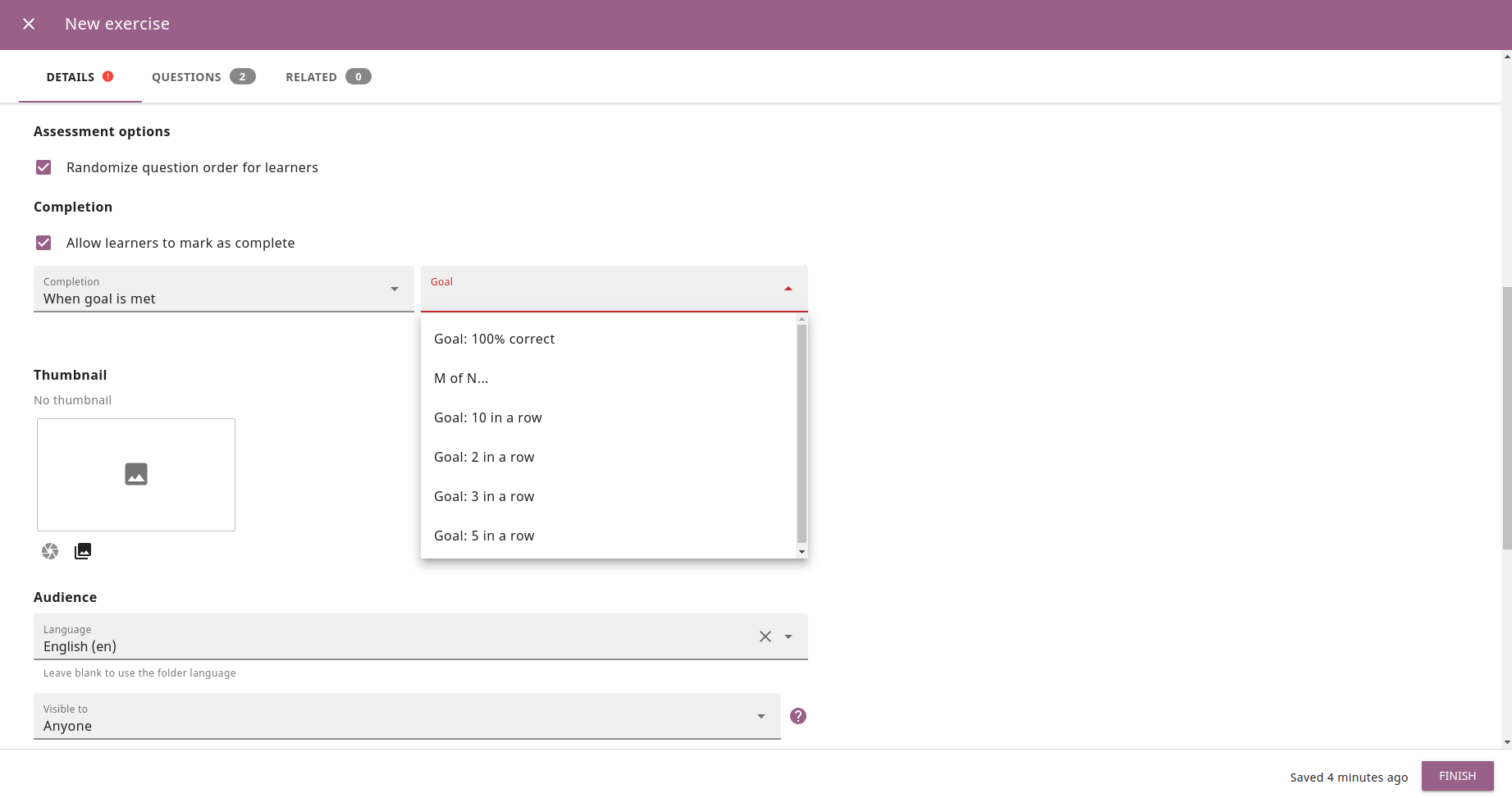 Fix #2797 incorrect order of options in the Exercise > Edit Details page > Assessment options#4039