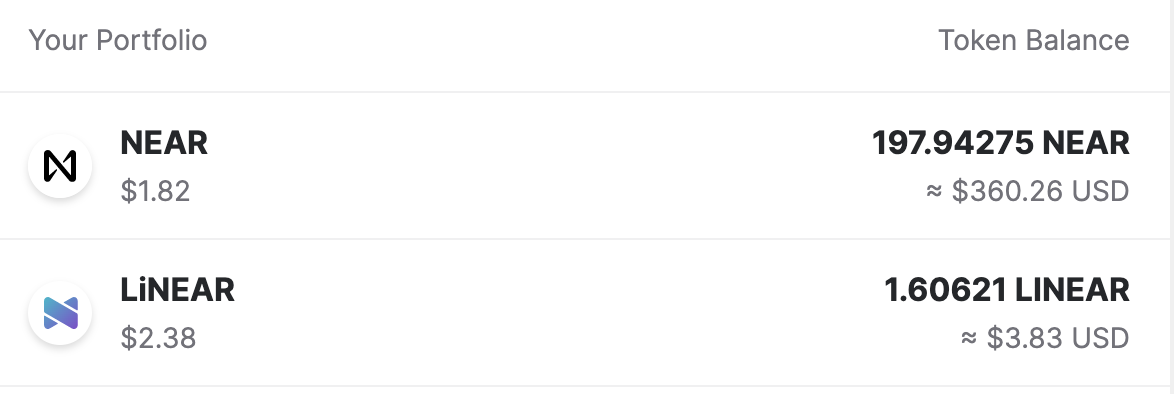 ft_balance_offunction call, the NEAR indexer will automatically add LiNEAR token into caller's NEAR wallet token list.