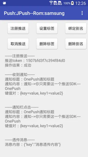 如果集成的是1.0版本的OnePush建议升级到1.2版本。 1.0版本集成文档 所有的lastVersion对应的是上面表格的最新的版本号,集成的时候,需要进行替换。 设置Deubg模式:OneLog.setDebug(),该方法需要在OnePush.init()方法前调用。