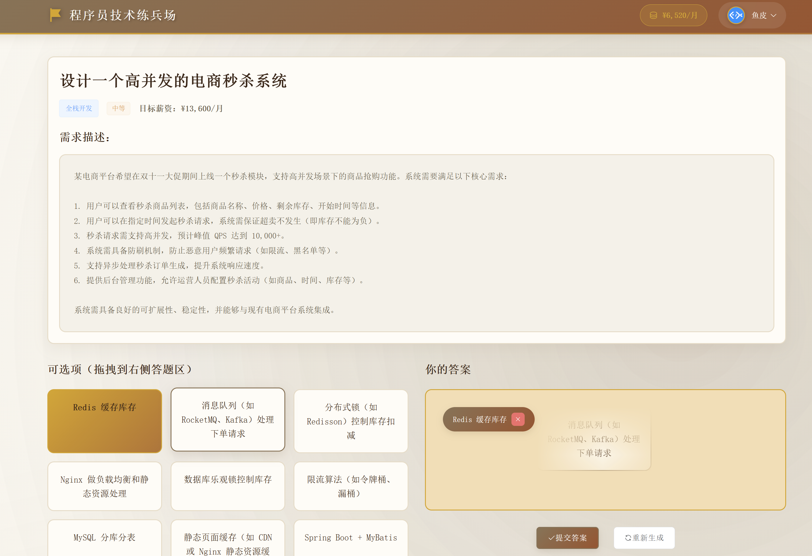 3)拖拽式答题:拖拽交互设计,让答题过程更加直观有趣,支持多选技术方案组合。