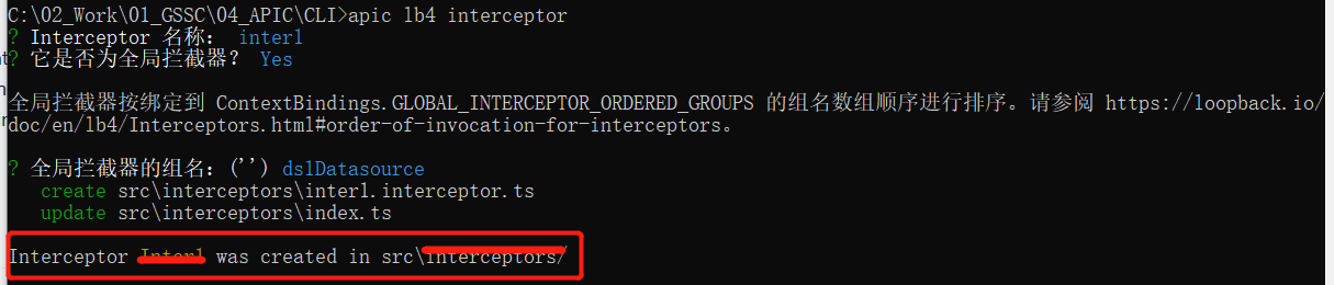 input ../apic lb4 interceptor and click Enter