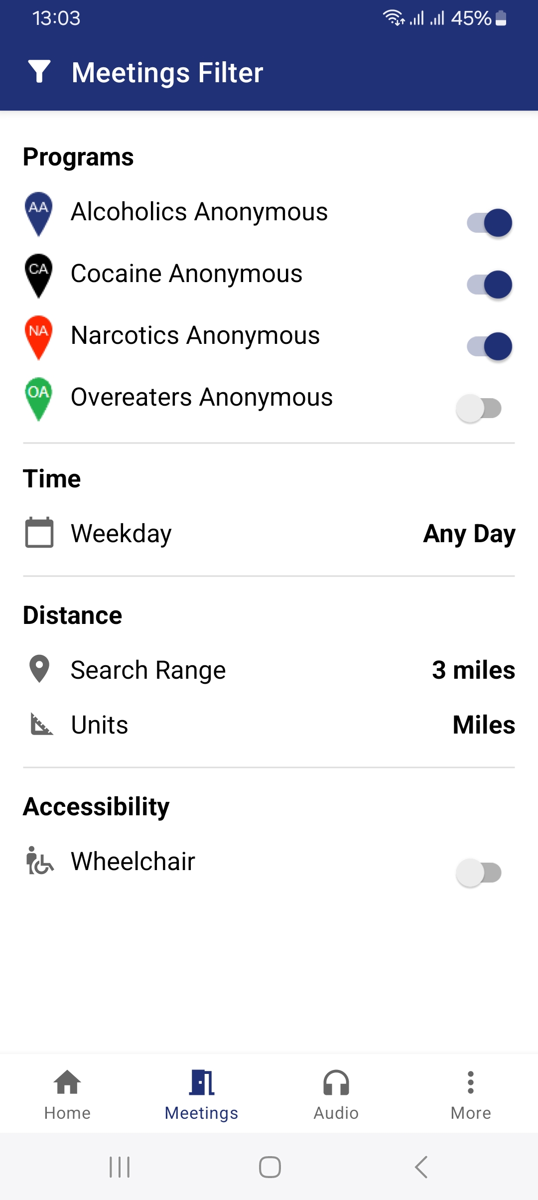 12-Step Recovery is an Android companion app for recoverymeetingfinder.com. When it is finished it aims to provide reading materials, daily quotes, reading material, motivational images, an in-person meeting map and motivational speaker tapes.