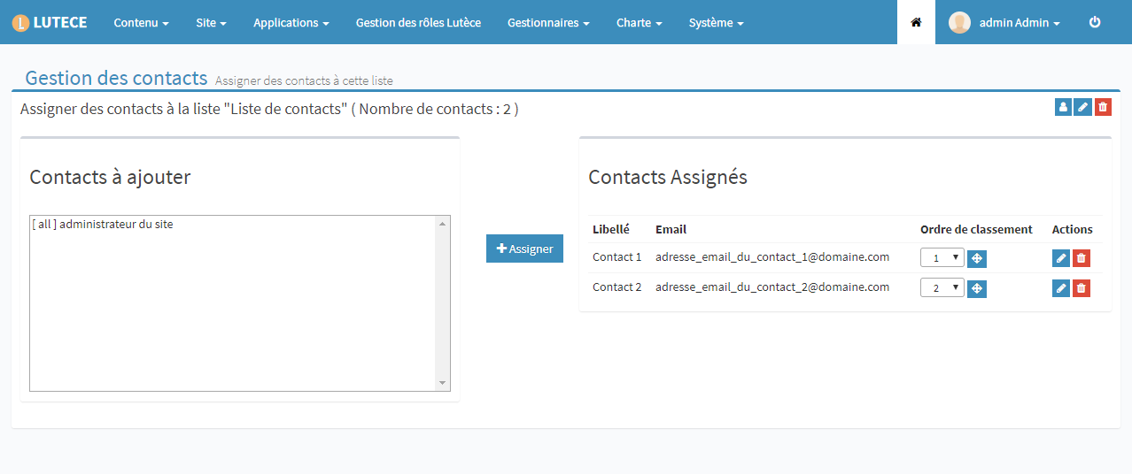 Contact list edition page: