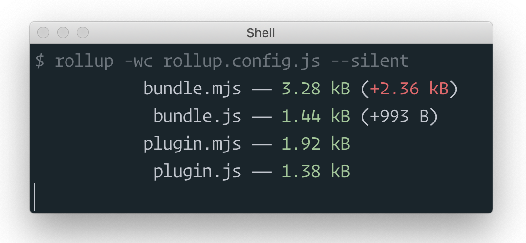 Prints the gzipped sizes of your rollup assets and the changes since the last build.