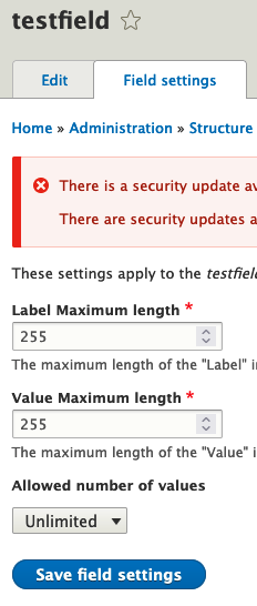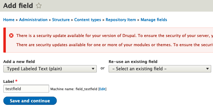 Add new field (field_testfield) with field type = Typed Labeled Text (plain)