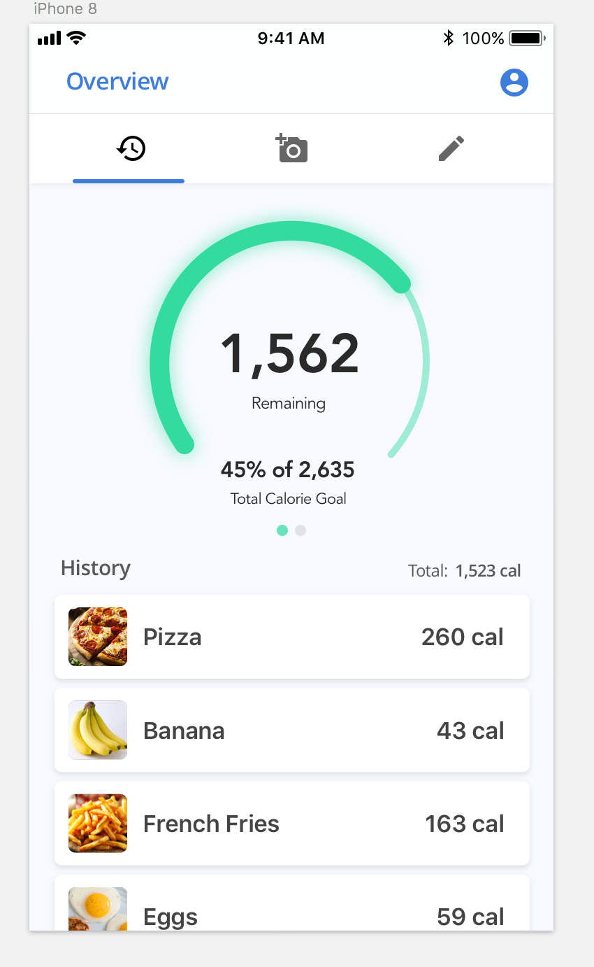 So what exactly was our solution? An app that tracks calories easily... that “easily” part was very important to us, because we know that there are already lots of excellent solutions out there to track your calories/nutrition information.