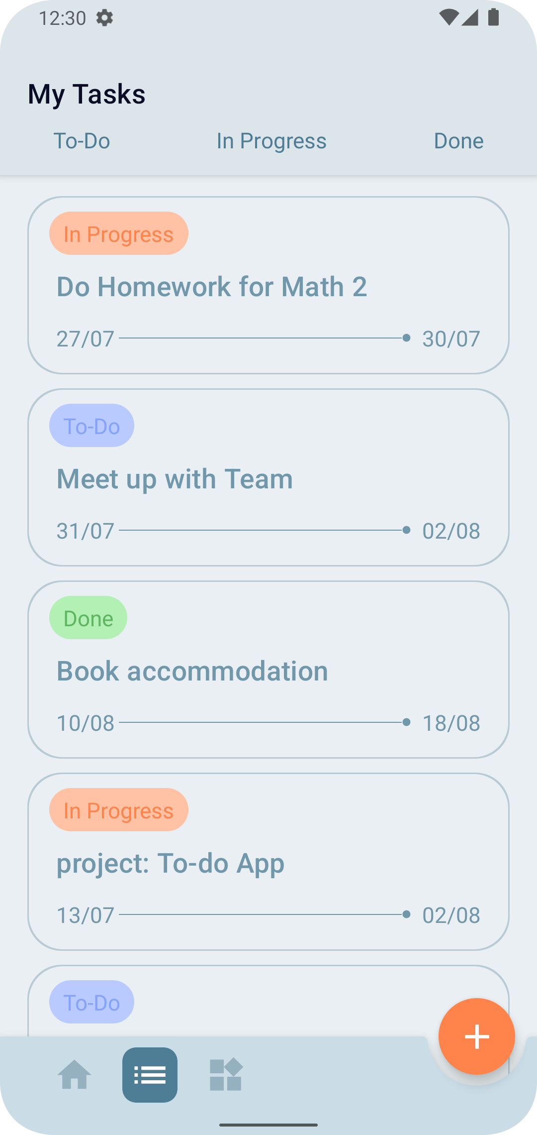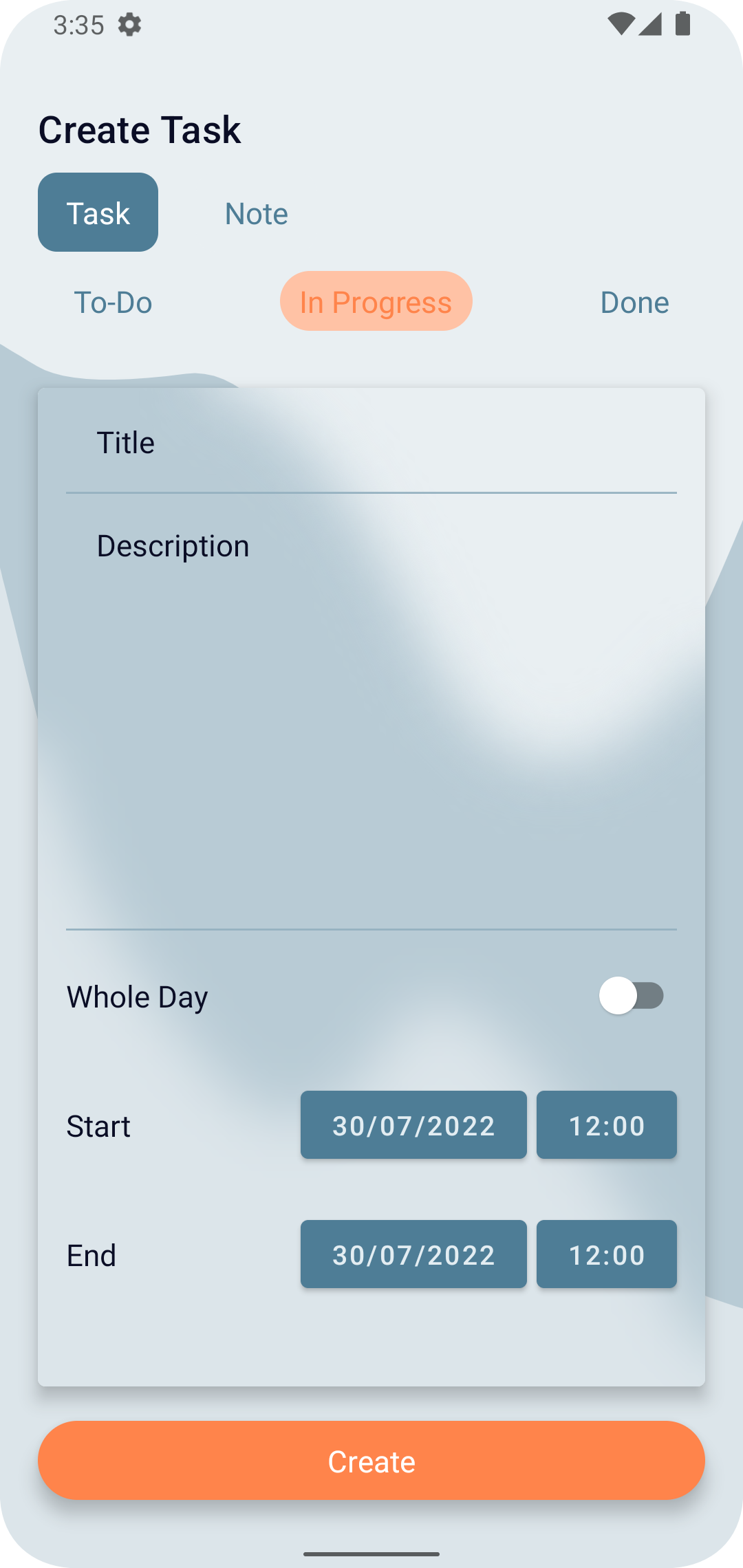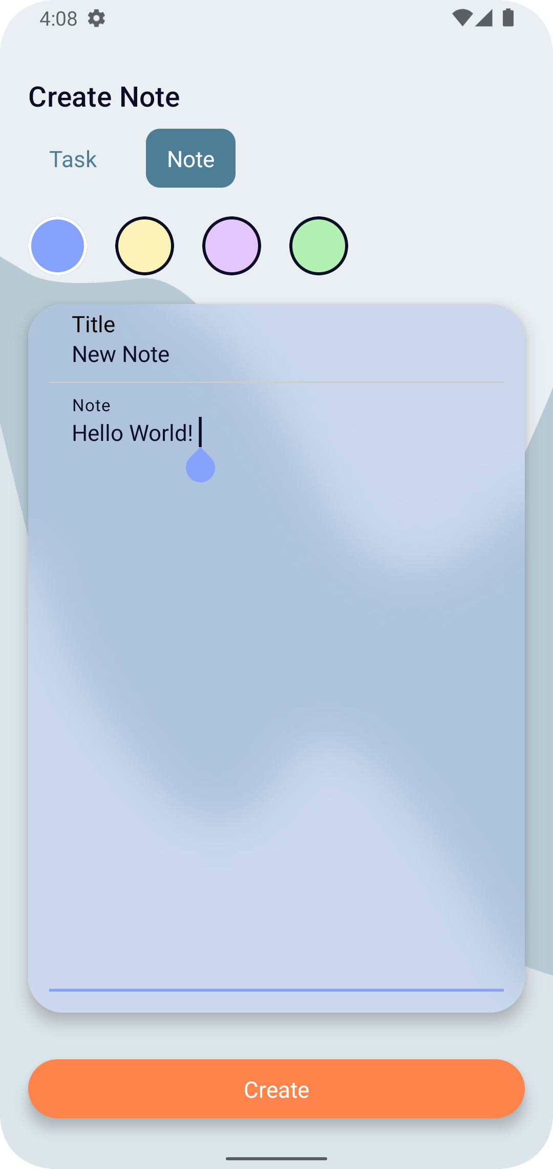 Application Screens: Home, Create Task/Note
