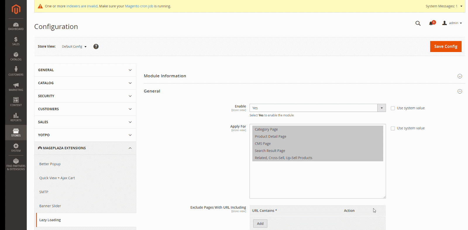 Login to the Magento Admin, go to Stores > Settings > Configuration > Mageplaza Extensions > Lazy Loading