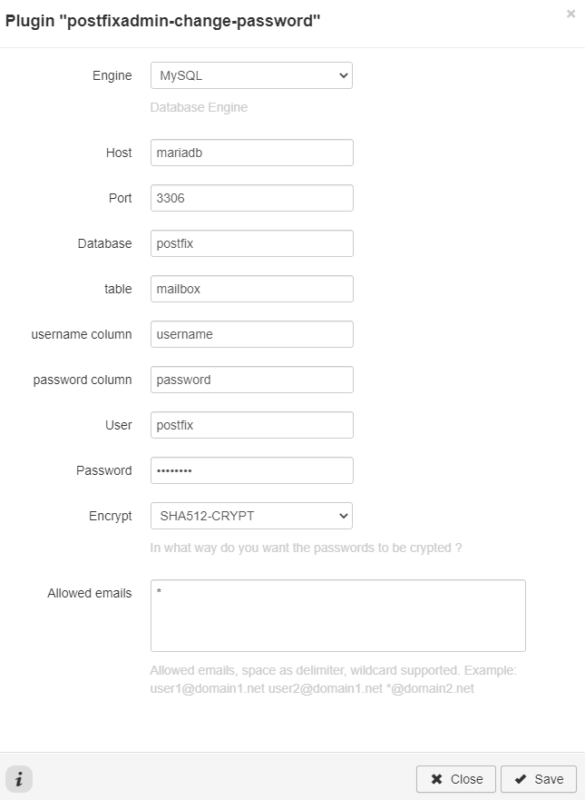 This plugin allows email users changing their own passwords.