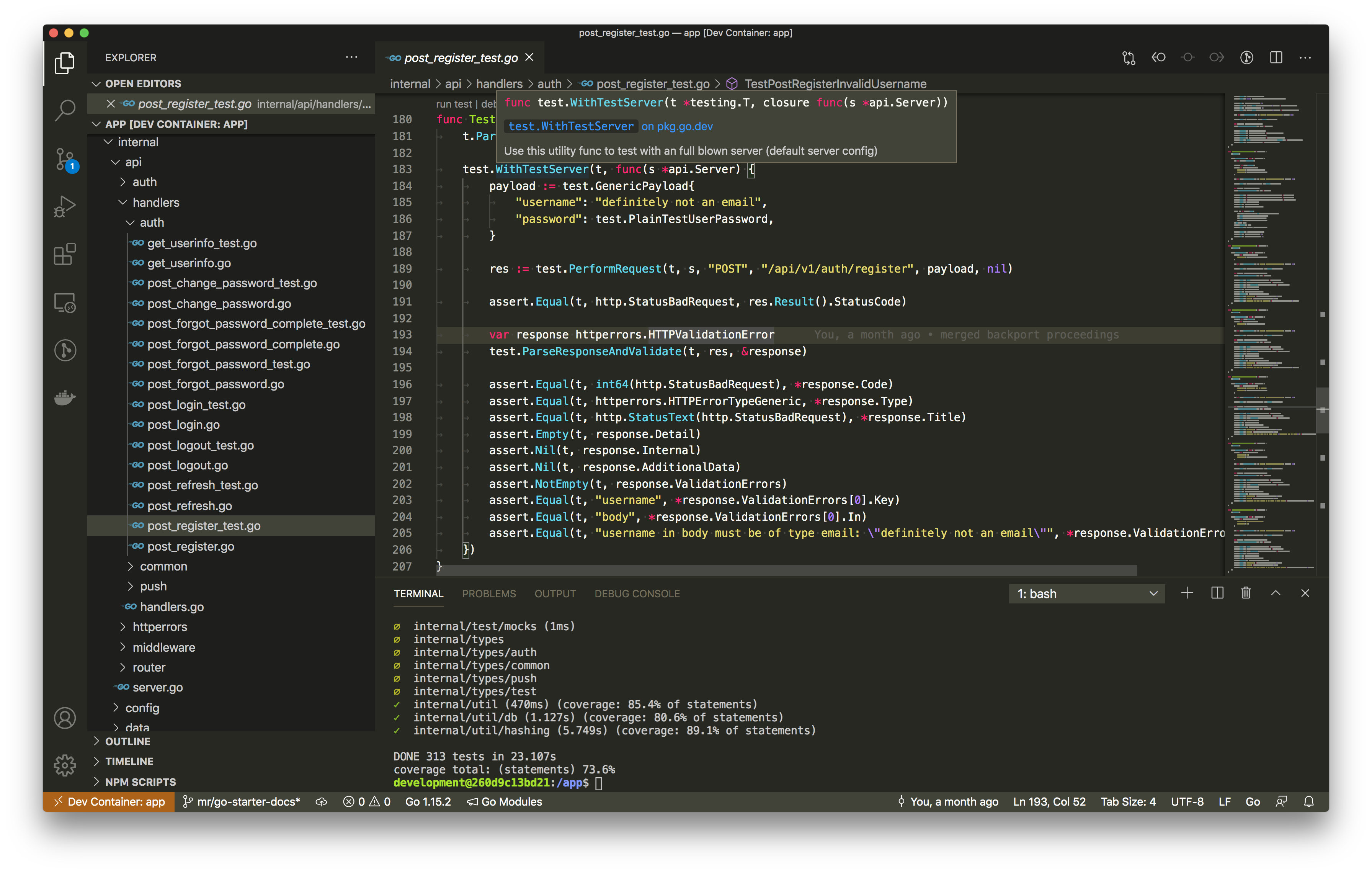 This project makes use of the Remote - Containers extension provided by Visual Studio Code. A local installation of the Go tool-chain is no longer required when using this setup.