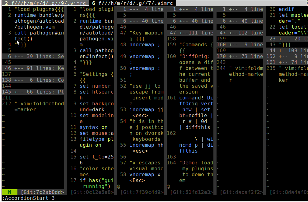 Accordion is a vim window manager for people who love splits. Splits can be great for viewing levels of a call stack or versions of a file side-by-side, but if there are more than a few, they become too thin to comfortably read.